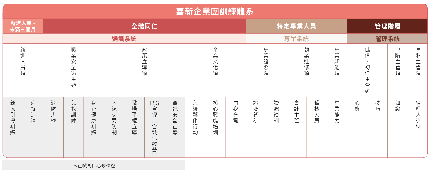 - 全體員工必修課程:強化核心技能及知識基礎。